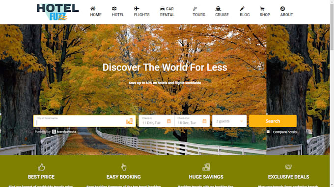 I will design a complete hotel, flights, car rental affiliate & tour responsive website (with WordPress auto blog page) having more than 3k thousand hotels and over 800 Airlines all over the world